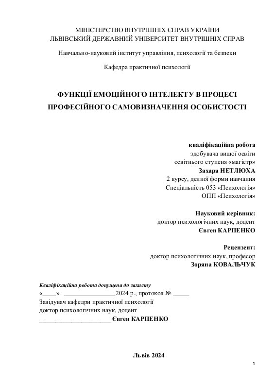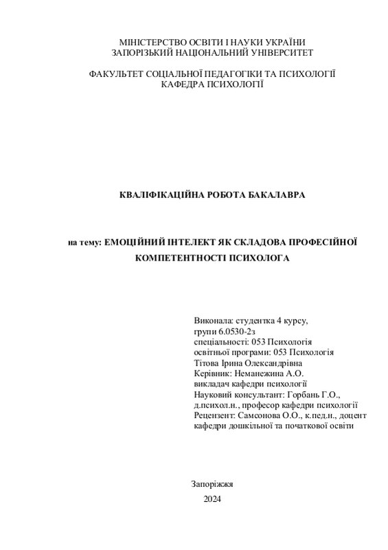 Емоційний Інтелект Як Складова Професійної Бакалаврська Робота